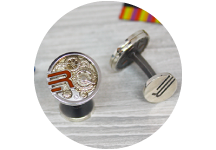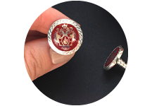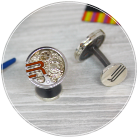 В частности, возможно изготовление изделия любой формы и степени сложности. С помощью станков, оборудованных ЧПУ, мы можем идеально точно изготовить запонки любой степени сложности. Кроме того, мы применяем горячие и холодные эмали для придания оригинального вида изделию. Ознакомиться с примерами работ вы можете по фото, опубликованным на сайте.